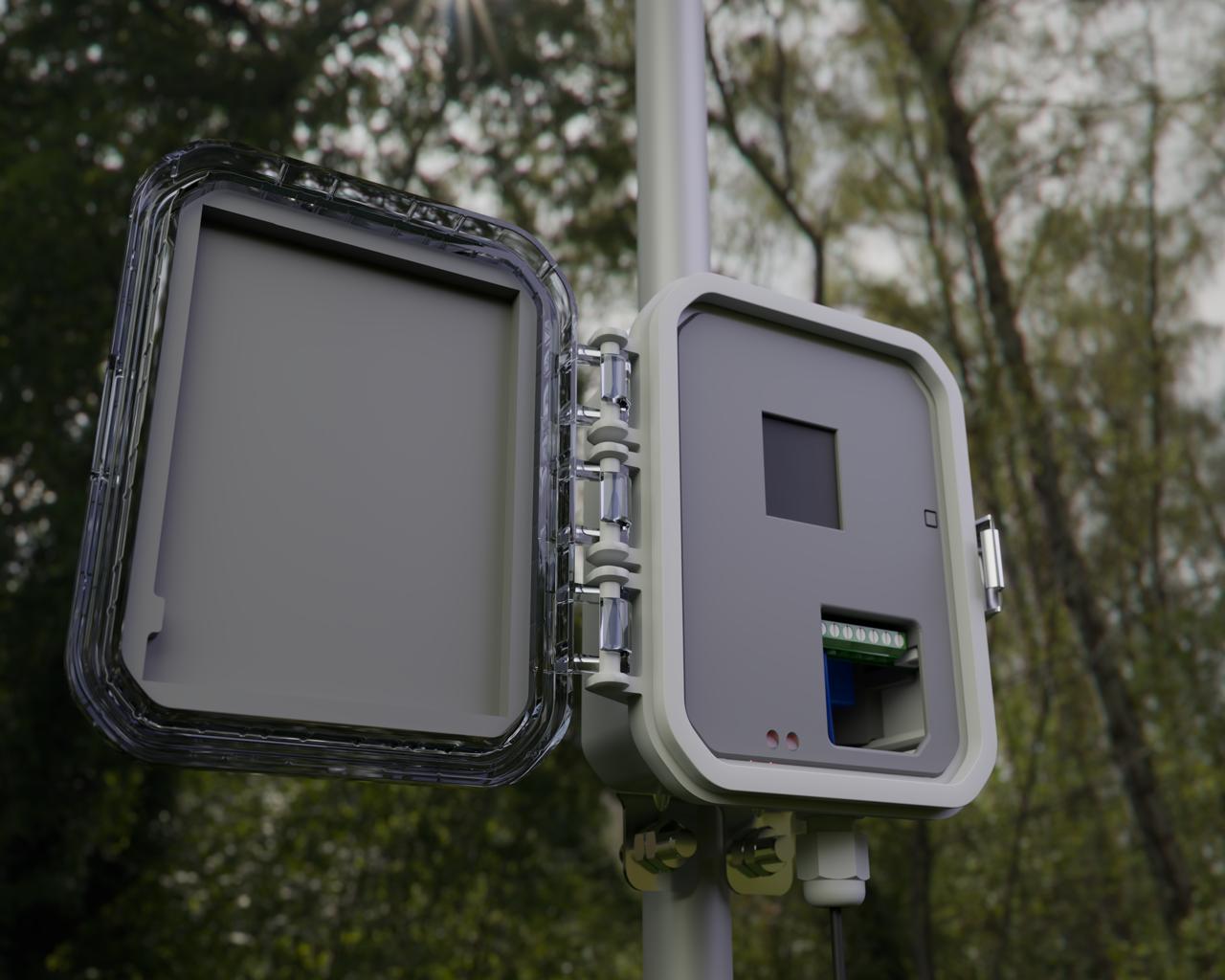 Cuenta con un sistema de energía versátil alimentado por batería interna, batería externa y panel solar montado en la tapa. El gabinete IP67 garantiza protección total